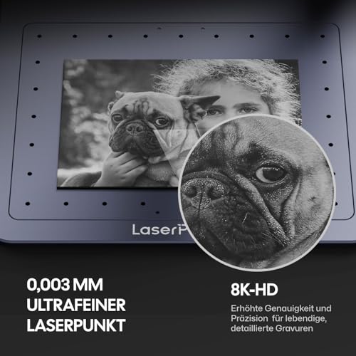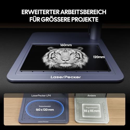 - Die revolutionäre Generation LP4: Der LaserPecker 4 ist dank des doppelten Diodenlasers und des gepulsten Infrarot-Lasers mit über 300 Materialien kompatibel. Mit ultraschneller galvanometrischer Technologie erreicht LaserPecker 4 eine Gravur von 4000 mm/s auf einem Arbeitsbereich von 160 x 300 mm (mit Verlängerung der Schiene). Genießen Sie 8K-Präzision mit einer Körnung von 0,0019 mm, vergleichbar mit realistischen Fotos. LP4 verarbeitet mühelos komplexe Holzschnitte (bis zu 8 mm) und dunkles Acryl (bis zu 5 mm)
